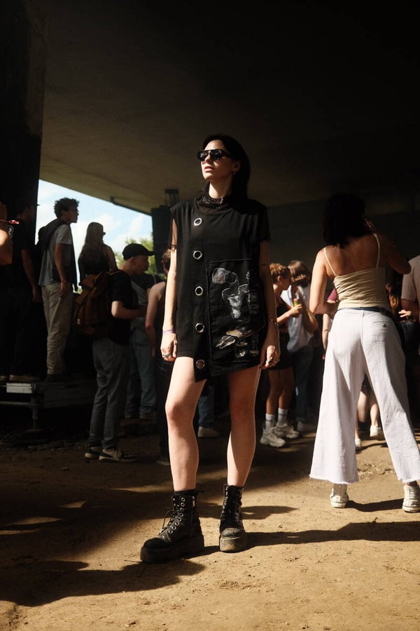 Double layered tank top dress with rivets and print