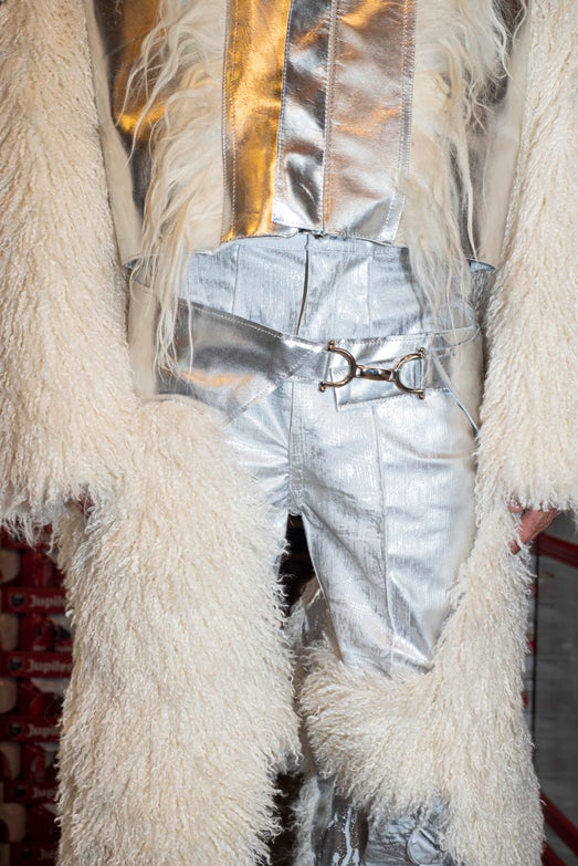 Arno used his own experiences and feelings from his life for this collection and converted them into different prints, materials and shapes. He describes the feeling from which he gets his inspiration as a journey. A journey through what the cowboy already knows -Las Vegas and it's neon colors - and then the mountainous region yet to be discovered. A collection in which the spectator can find his inner cowboy by empathizing wit the designer's journey. Based on a personally experienced journey, translated into prints, materials and shapes that are derived from own experiences and feelings. These are combined with typical elements of a cowboy who made a journey by himself and his caddle. There is what already has been discovered like Vegas and it's neon colors but beside that we have things yet to be certain about. Miles of unknown mountain range yet to be crossed. Walking a path with disruptions and changes that we have to. adapt to, translated throughout this collection.